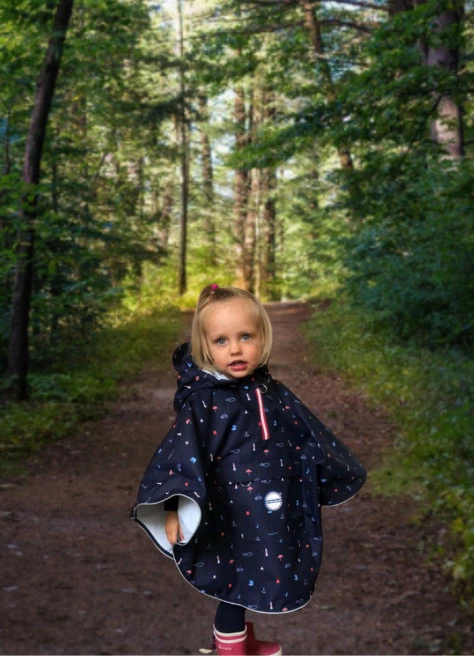 On adore la version adulte et on adore celle-ci ! Ultra efficace en cas de pluie, coupe-vent, la cape s’avère très utile lorsque la météo est capricieuse. Elle protège efficacement les jambes et la coupe est top ! Bref la meilleure cape enfant !
