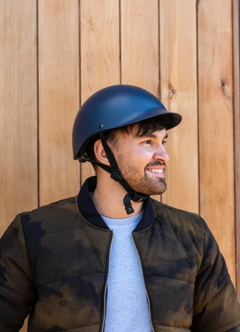 Casque bol au look rétro à la finition matte avec une attache à l’arrière pour installer une lumière. L’élégance à l’anglaise !
