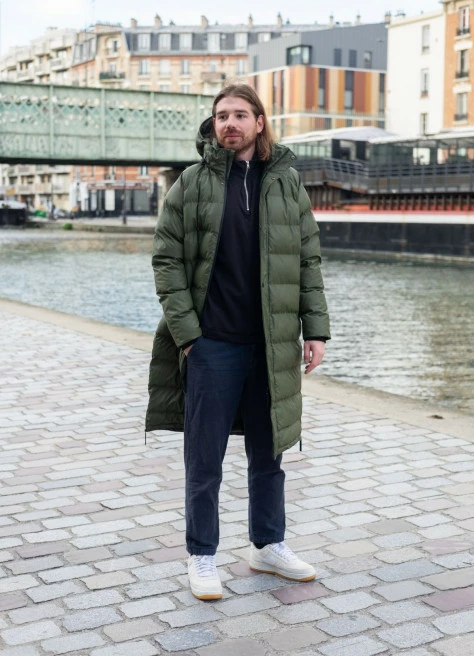Une marque qu’on adore avec des produits toujours réussis. La doudoune est bien pensée, descend assez bas pour facilement couvrir les jambes et tient parfaitement chaud lors de trajets froids. L’imperméabilité est la même que la parka cirée, donc aucun risque d’être mouillé !