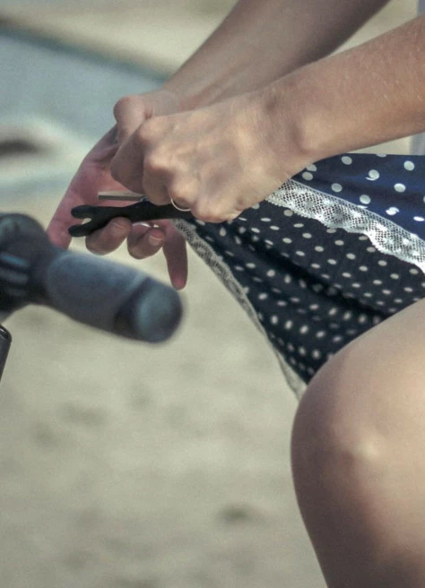 A vélo, afin de rester élégante face au vent plusieurs méthodes : serrer la jupe entre ses jambes (pas infaillible), s’asseoir sur le pan avant de la jupe (pas à l’aise) ou bien avoir de magnifiques dessous ! Ou alors : utiliser le Poupoupidou vélo !