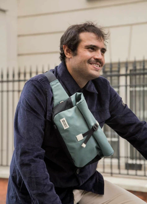 On adore MeroMero, jeune marque française qui a tout bon quand il s’agit de sacs beaux et pratiques et en plus qui est engagée dans l’eco-conception. Bien pensée cette sacoche roll-top a plein de petites poches, on peut la porter en bandoulière ou en banane et s’accroche très facilement à votre vélo. Hyper légère, son tissu est imperméable et recyclé.