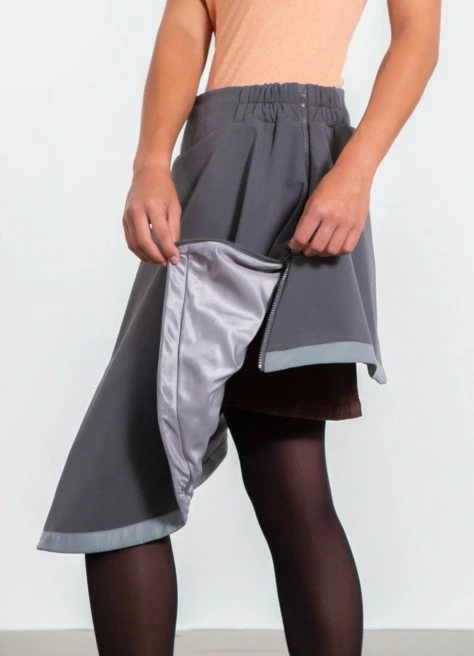 Fermeture éclair qui permet de « dézipper » la sur-jupe de la taille au genou en un clin d’œil