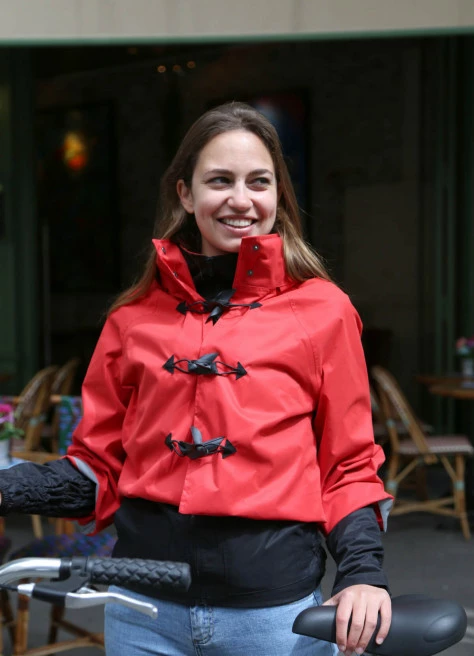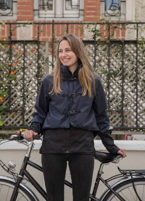 Pensée pour les cyclistes urbains : imperméable, extra-légère, respirante, détails réfléchissant, poches faciles d’accès mais surtout super jolie !